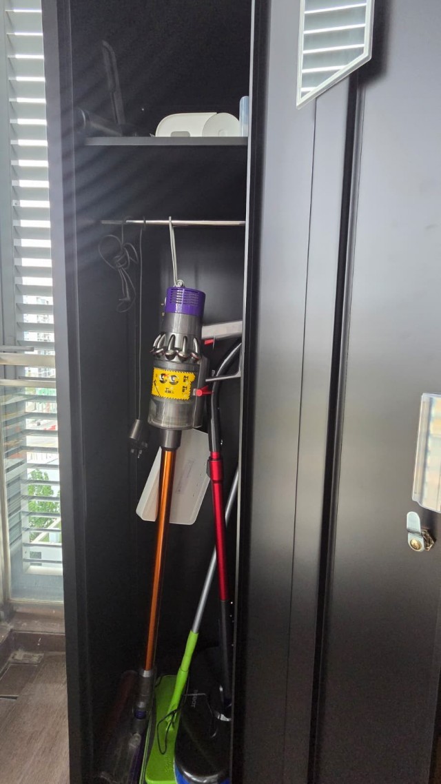 * Dyson vacuum, washing machine, drying rack, iron